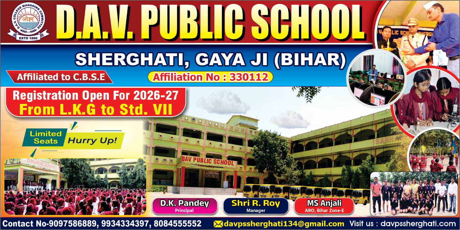 D.A.V. Public School, Sherghati, Gaya (Bihar) a co-educational english medium School being established in 1993 and is affiliated with C.B.S.E., Delhi up to Secondary Level. It is situated in eco-friendly atmosphere at Sherghati about 02 km. away from NH-2. The school has...
